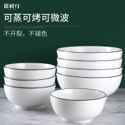 【精选】富诚行 黑边陶瓷面碗汤碗 6英寸10个