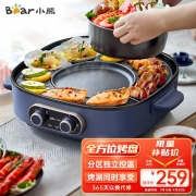 【精选】小熊/Bear 电烧烤炉 DKL-B17C1 尺寸:37.8*43.2*22cm 煮锅800w 烤盘900w