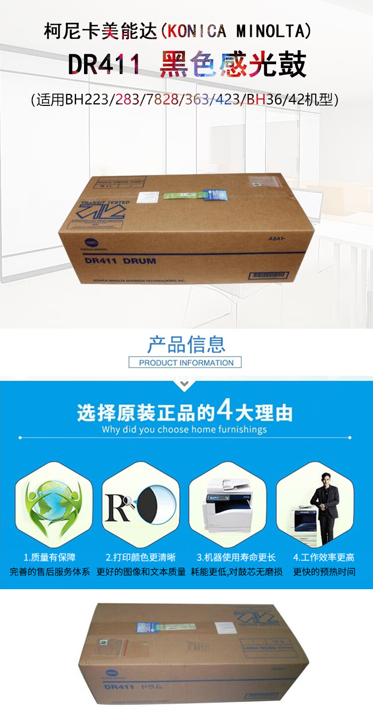 商品名称:【精选】KONICA MINOLTA 柯尼卡美能达DR411感光鼓 黑色 适用机型BH223/283/7828/363/423/BH36/42