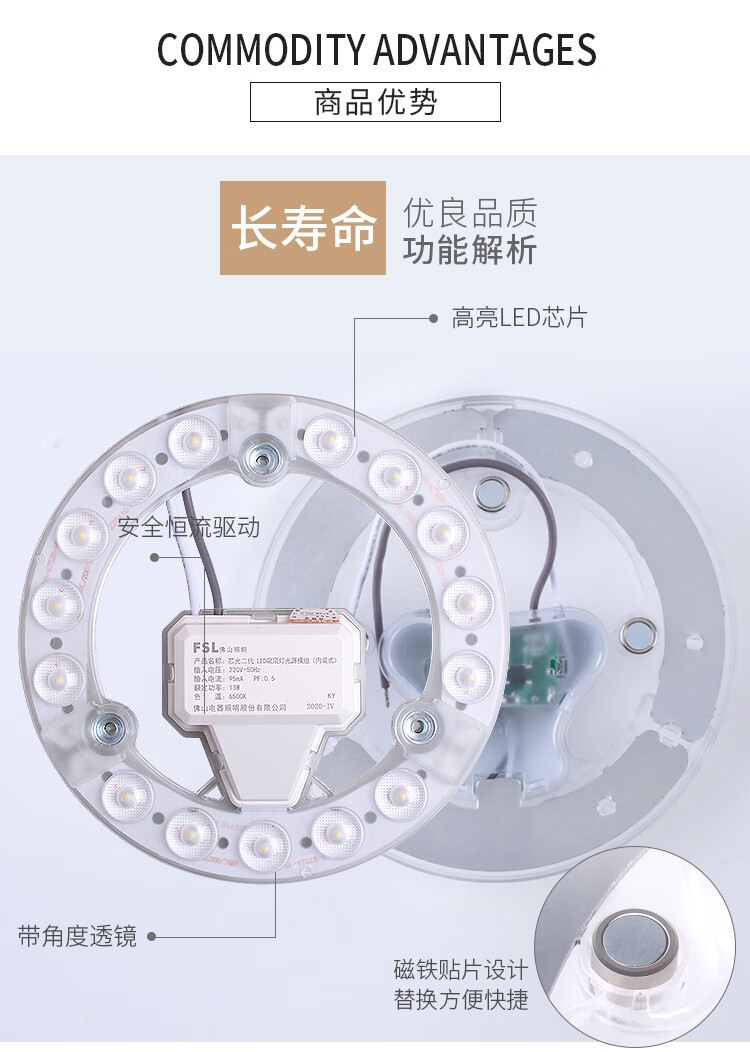 商品名称:【精选】佛山照明(XZXQ)LED灯板灯盘吸顶灯卧室灯 客厅灯改造板光源模组13W白光