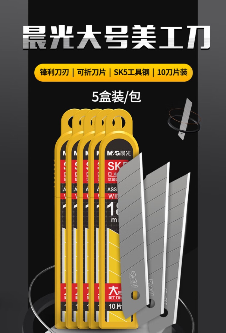商品名称:【精选】晨光 M&G 大号美工刀刀片 ASS91413 18mm 20盒/包 180盒/箱