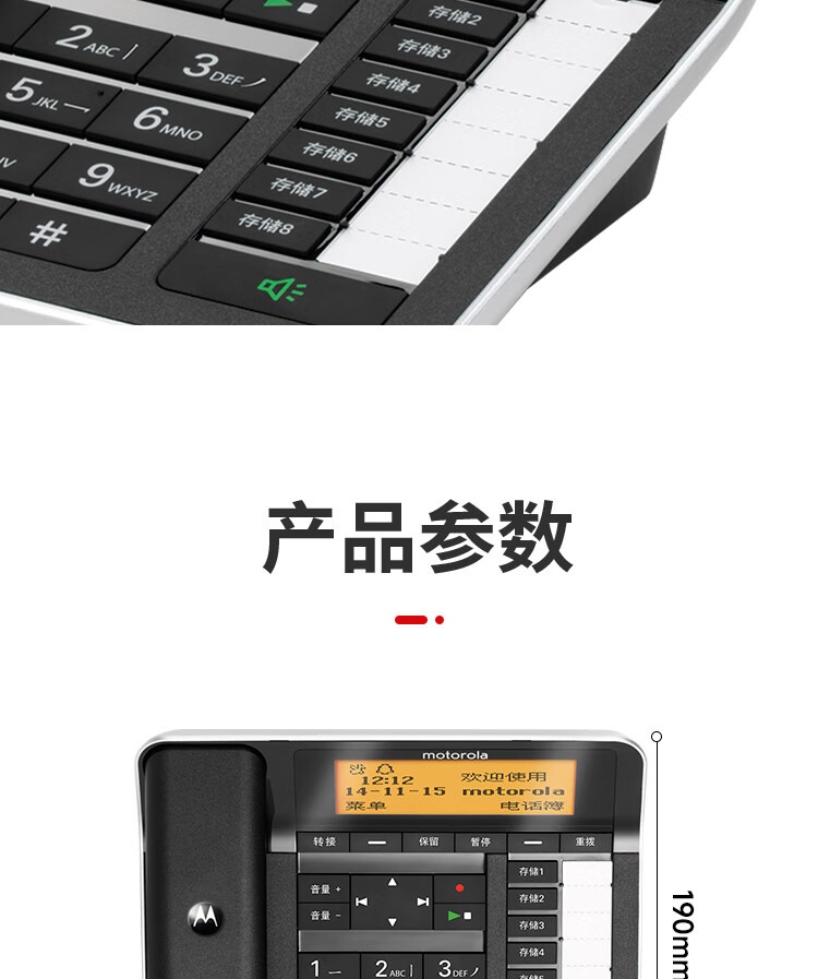商品名称:【精选】摩托罗拉(Motorola)(GBHX)录音电话机座机 办公室固定电话全中文语音报号免提 支持128G内存卡CT700C(黑色)