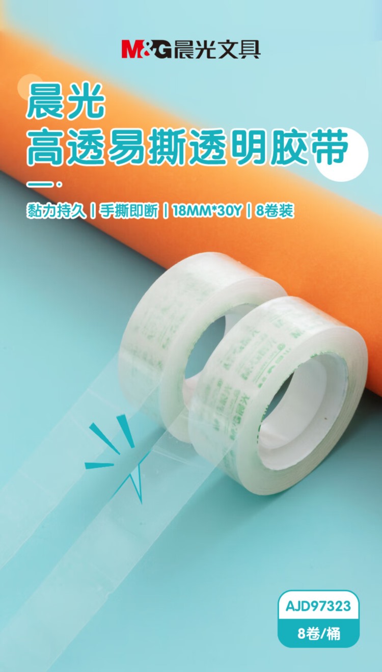 商品名称:【精选】晨光 M&G 透明胶带 AJD97323 18mm*30Y 8卷/筒