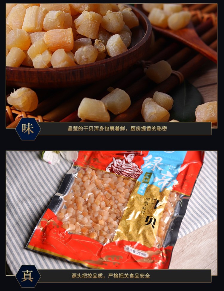 商品名称:【精选】绿帝 干贝 250g (计价单位:袋)