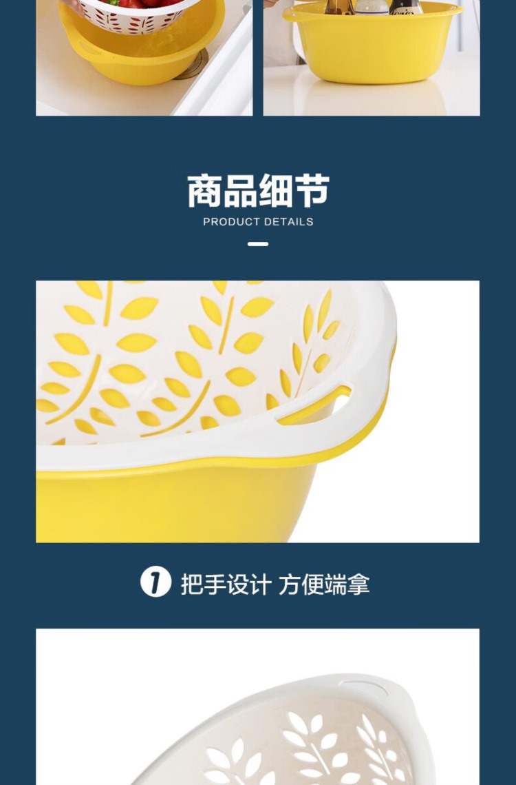 商品名称:【精选】茶花 厨房洗菜篮塑料水果盆双层沥水篮漏水果蔬筐淘菜盆滴水筛 1156 (新款黄色)