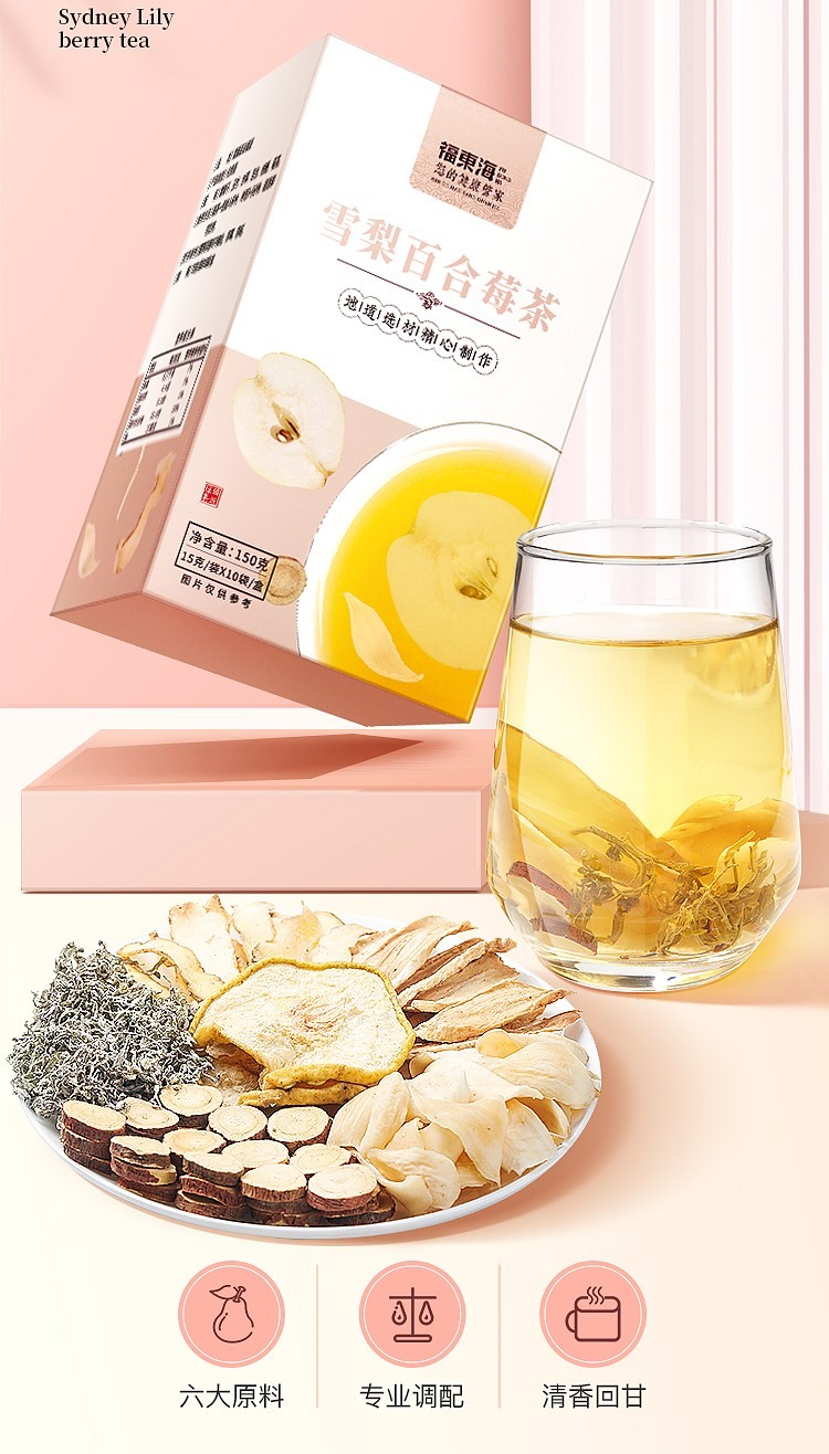 商品名称:【精选】福东海(GBHX) 雪梨百合莓茶养 150g 单位:盒