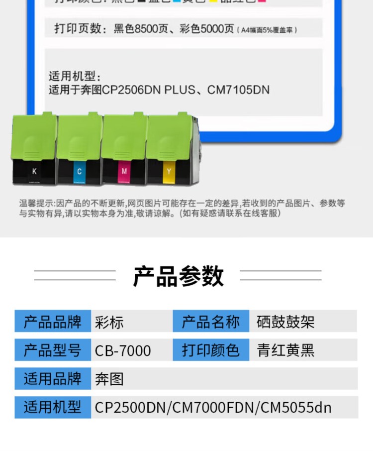 商品名称:【精选】彩标 碳粉 CTL-350HC 5500页 (青色) 适用于奔图CP2500DN(智享版)/CM7000FDN(智享版)