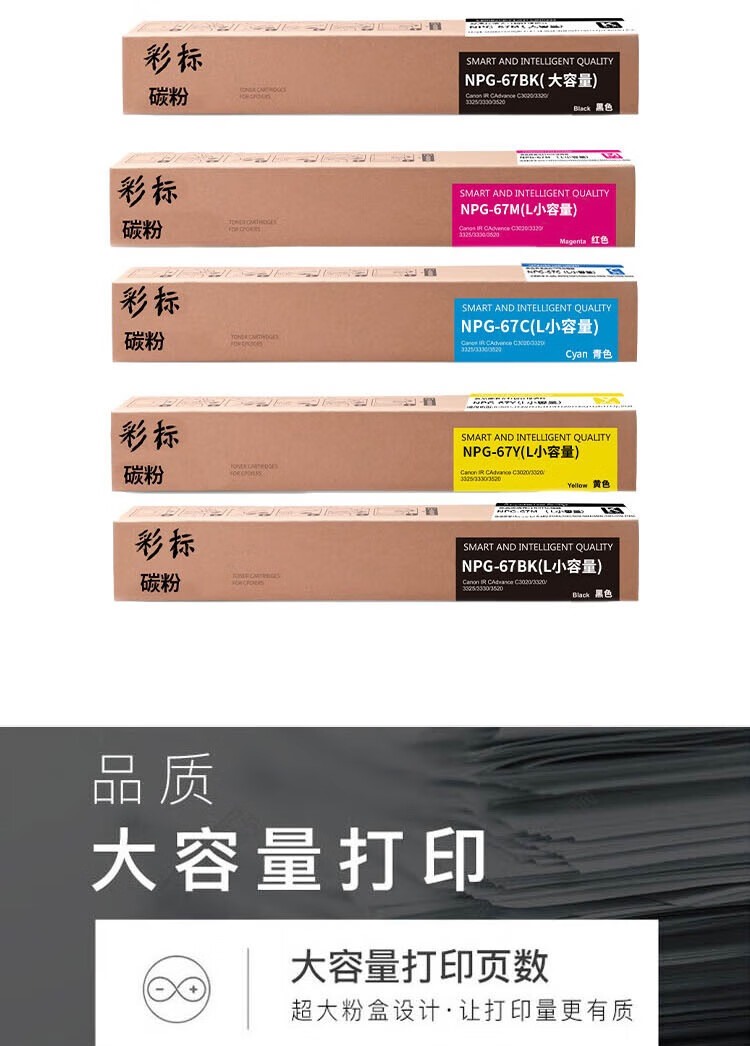 商品名称:【精选】彩标 硒鼓 NPG-67 适用佳能C3525 四色套装 约80000页