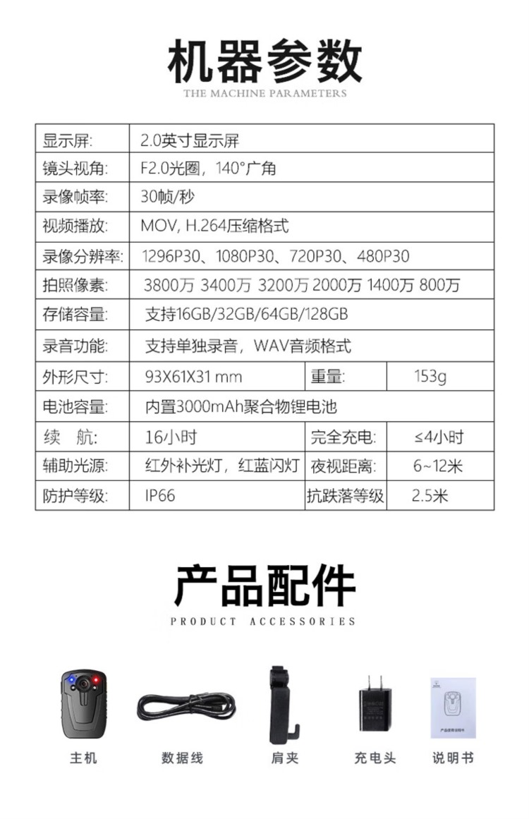 商品名称:【精选】执法专家 高清佩戴执法记录仪 DSJ-F8 128G GPS版(单位:个)