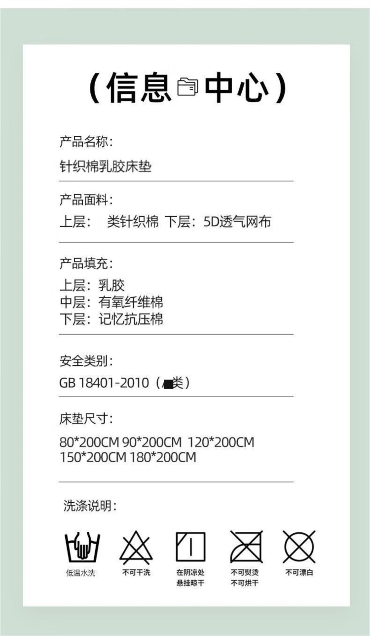 商品名称:【精选】自然巢 针织乳胶床垫 90*200cm (计价单位:张)