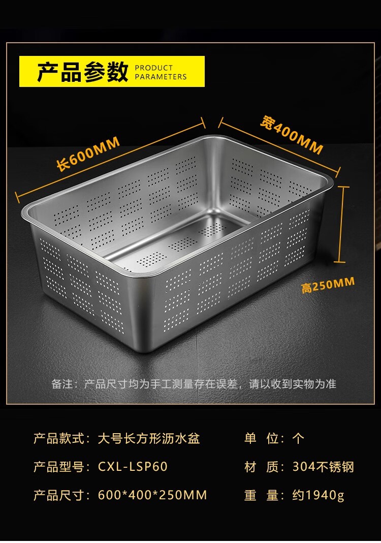 商品名称:【精选】创鑫利 304不锈钢漏盆长方形沥水盆 600*400*250mm (计价单位:个)