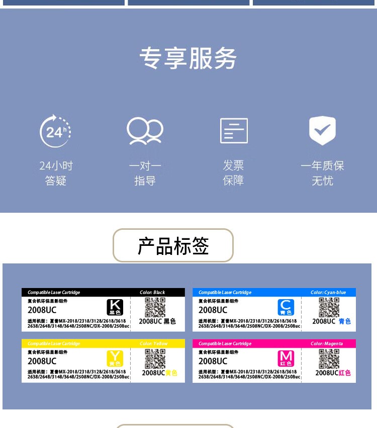 商品名称:【精选】彩标 显影组件 2008UC 约80000页 (青色) 适用夏普MX2018/2318/3128/2618/3618/2638/2648/3148/3648/2508NC/DX2008/2508uc