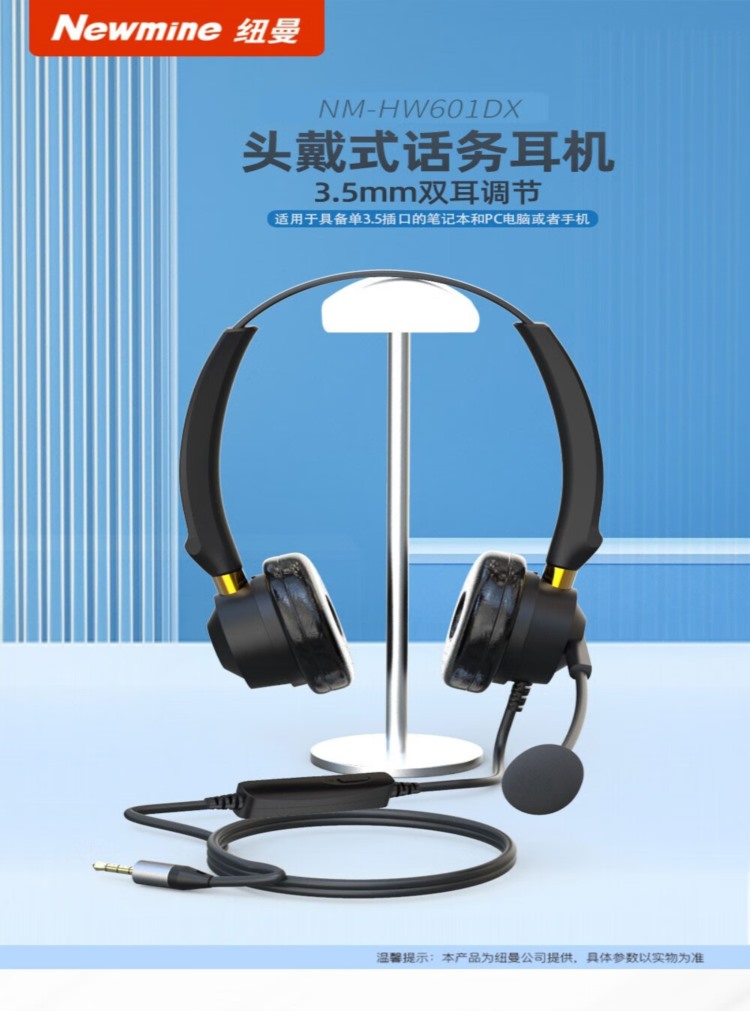 商品名称:【精选】纽曼 话务耳麦 NM-HW601SX 优选系列头戴式话务耳机 单耳-3.5mm单插+音量调节+闭音