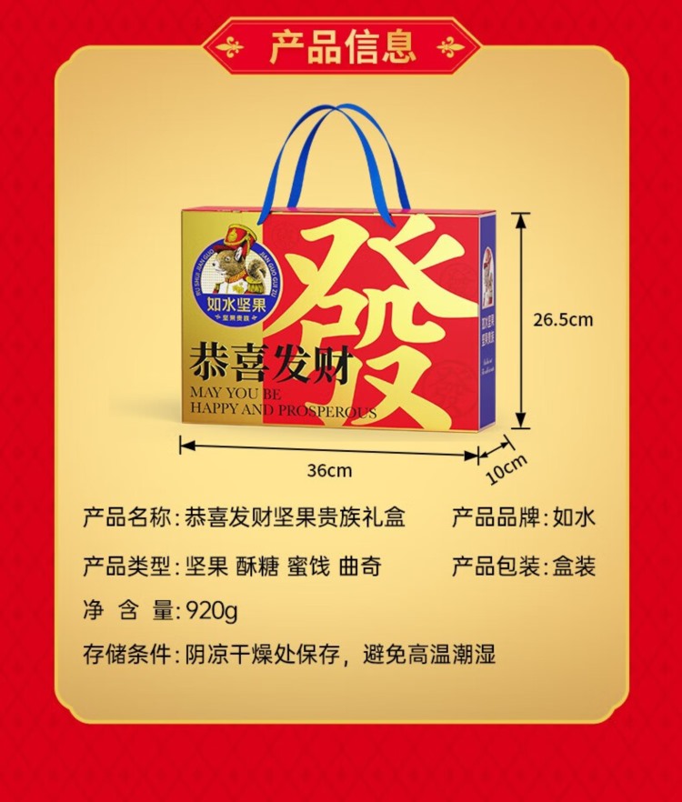 商品名称:【精选】如水 920g 恭喜发财坚果礼盒 (计价单位:箱)