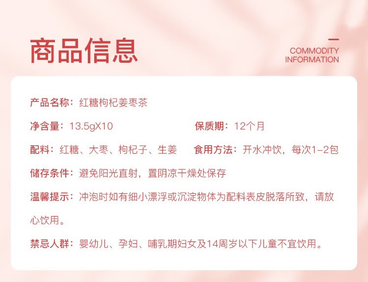 商品名称:【精选】福东海(GBHX)红糖枸杞姜枣茶 135g