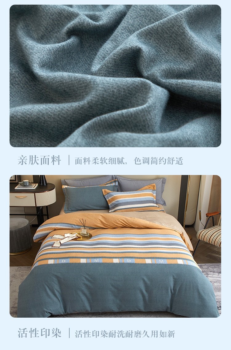 【精选】伊伊爱TJ0HJC2201657全棉磨毛条纹四件套200*230cm青春小调(绿)(单位:套)