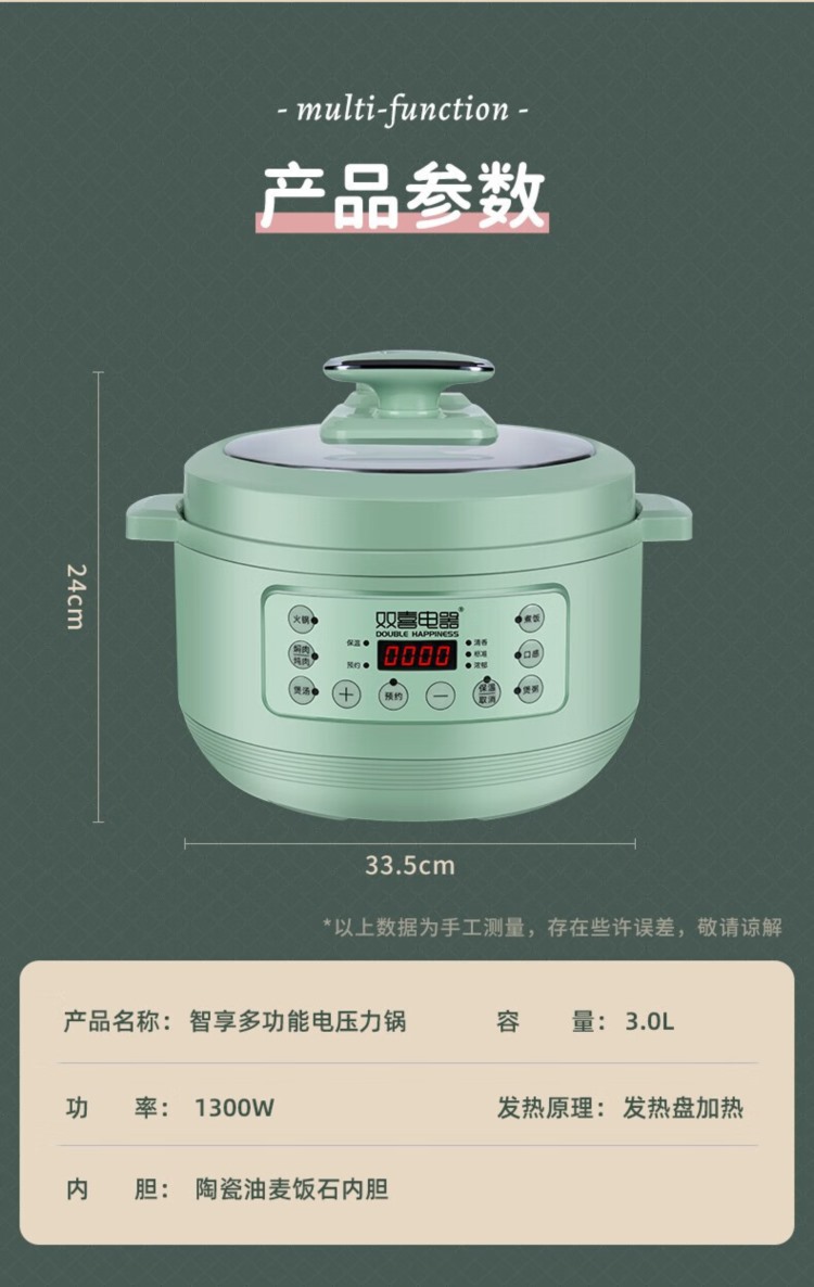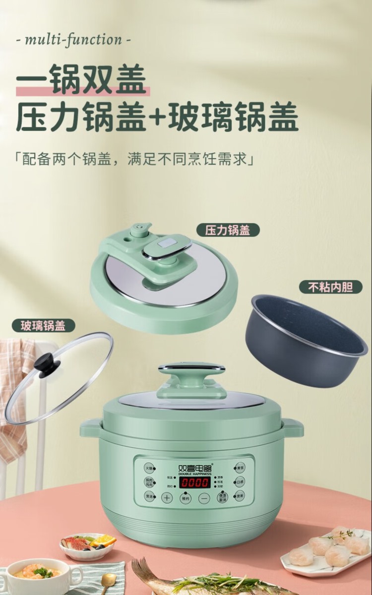 商品名称:【精选】双喜 (GBPLW) 多功能电压力锅 一锅多用不粘大火力 大容量3L 1300w 24*33.5cm 单位:套
