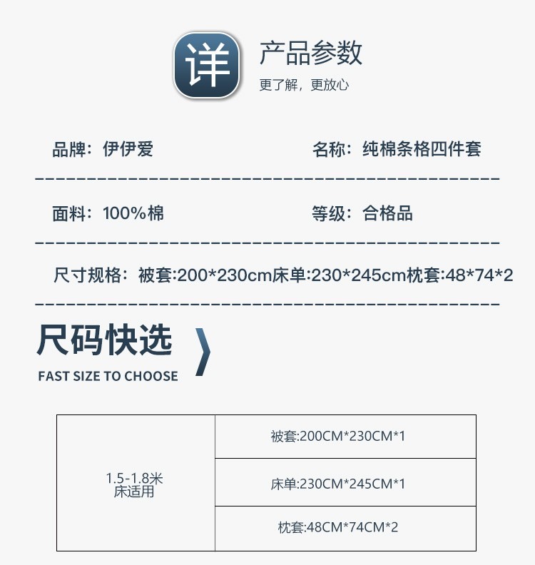 商品名称:【精选】伊伊爱(GBHX) TJ0NH02201495时尚纯棉亲肤条格四件套平行线200*230cm(单位:套)