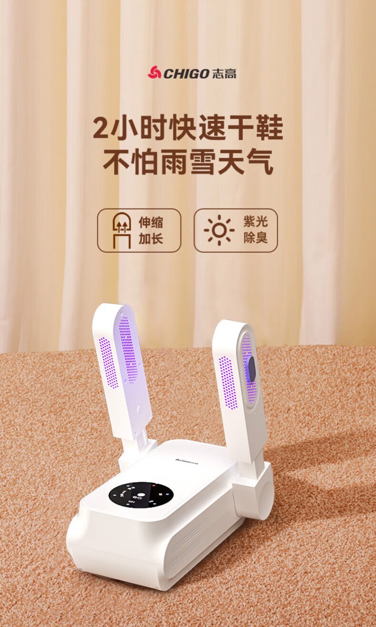【精选】志高(CHIGO)(GBHX)烘鞋器 机械伸缩定时款 235*185*250mm 【玫瑰盐盒+紫光杀菌】单位:台