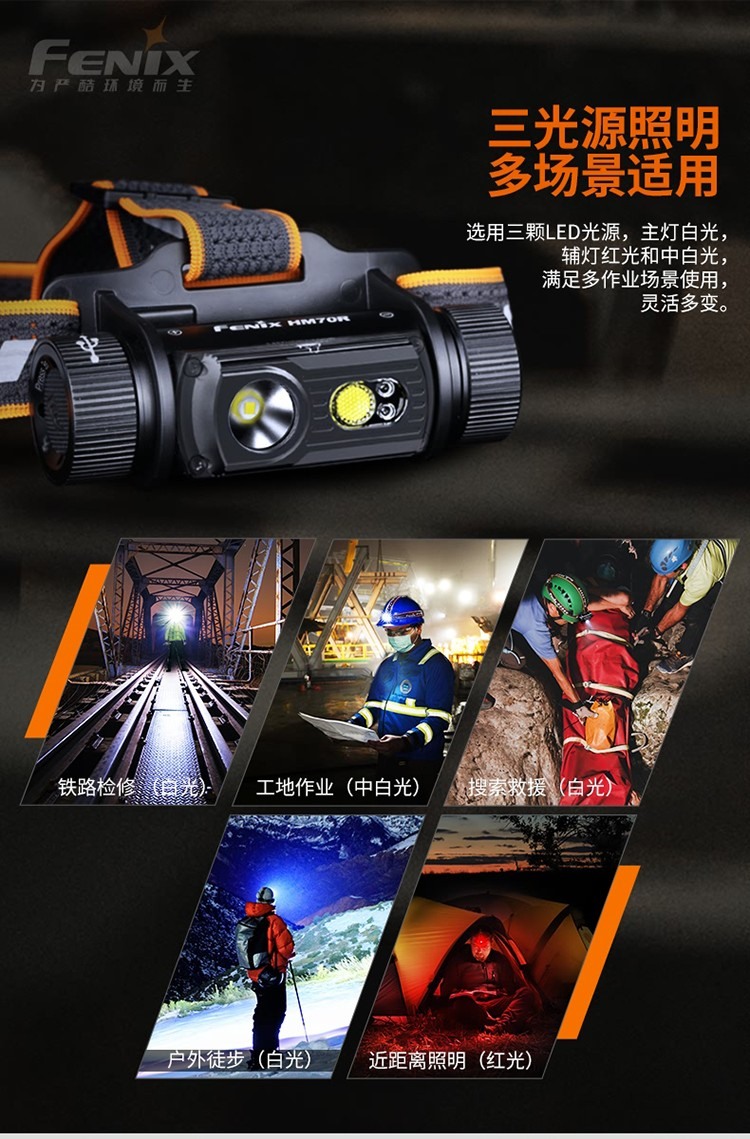 商品名称:【精选】FENIX HM70R (GBQX ) 强光头灯 1600流明 标配5000mAh (单位:个)
