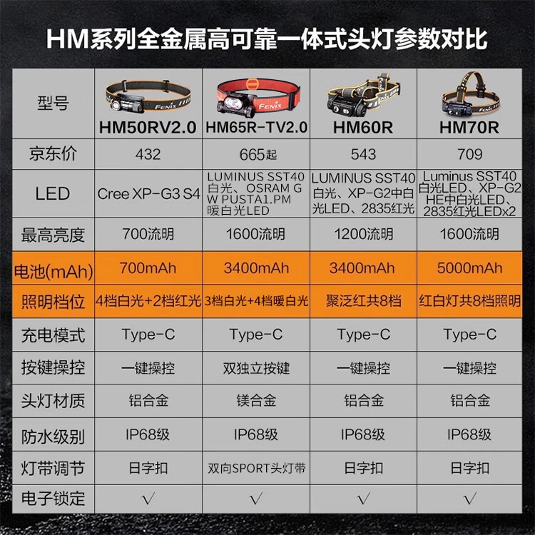 商品名称:【精选】FENIX HM60R (GBQX ) 强光头灯 1200流明 标配2600mAh (单位:个)