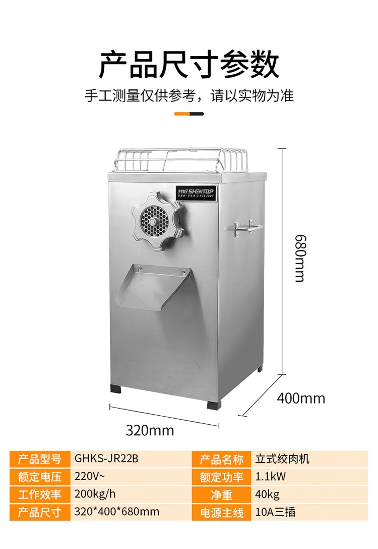 商品名称:【精选】共好 商用绞肉机 GHKS-JR22 200kg/h 320*400*680mm 1.1KW