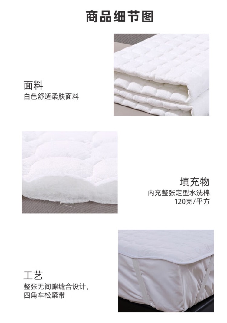 商品名称:【精选】顾柔 1.5米床保护垫 150cm*200cm (白色 )