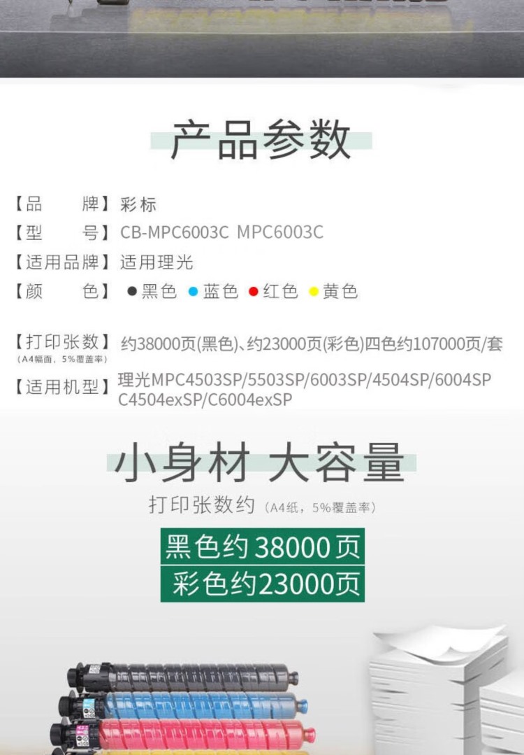 商品名称:【精选】彩标 高容碳粉墨粉盒 MPC6003C 适用MP C4503SP C4504SP C4504exSP (青色)(单位:支)