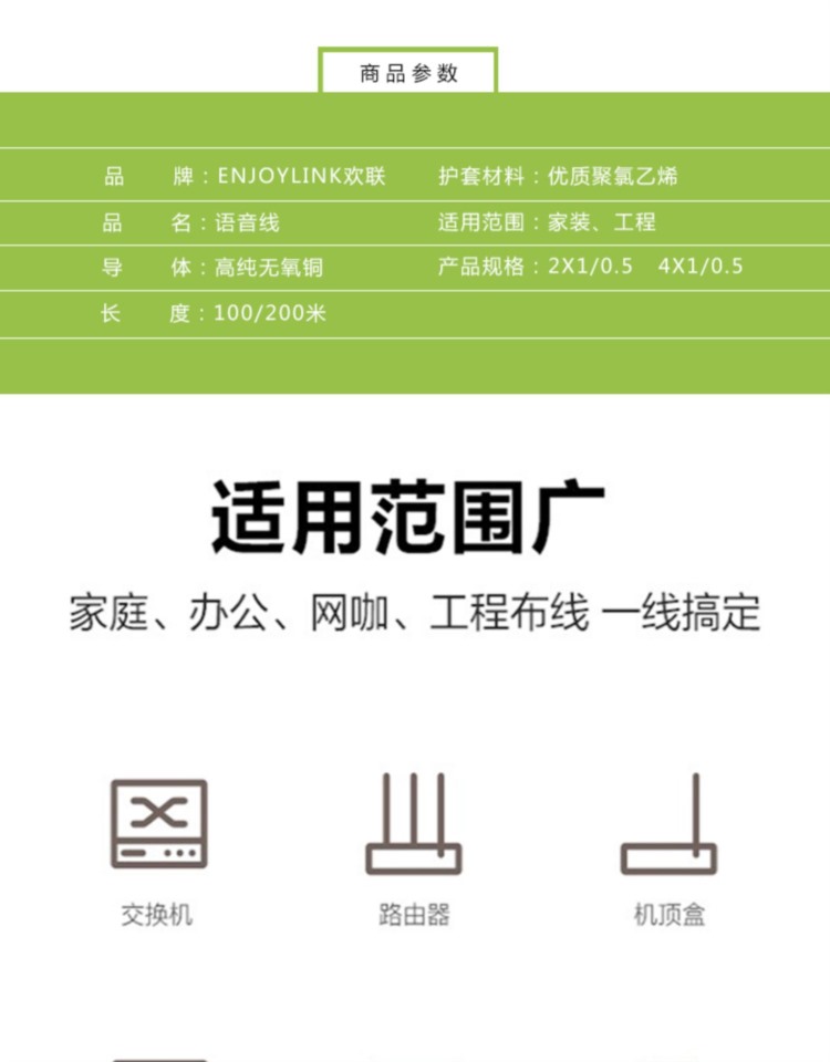 商品名称:【精选】ENJOYLink欢联 2/4芯语音线 白色 H1TE10015100 100米 2*05mm (单位:卷)
