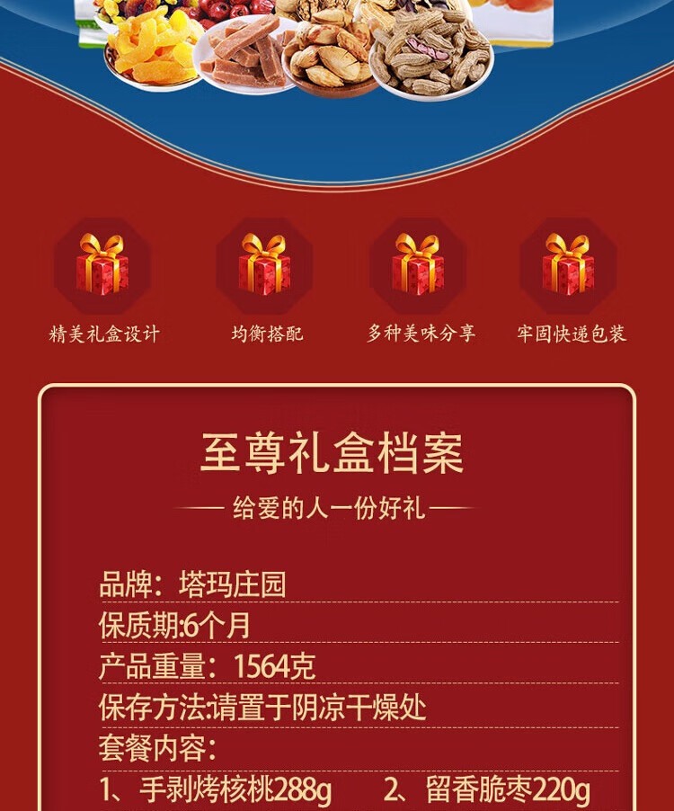 【精选】塔玛庄园 至尊礼盒1564 精选果干 坚果袋装礼盒 1564g/盒 1盒装 质保期:12个月