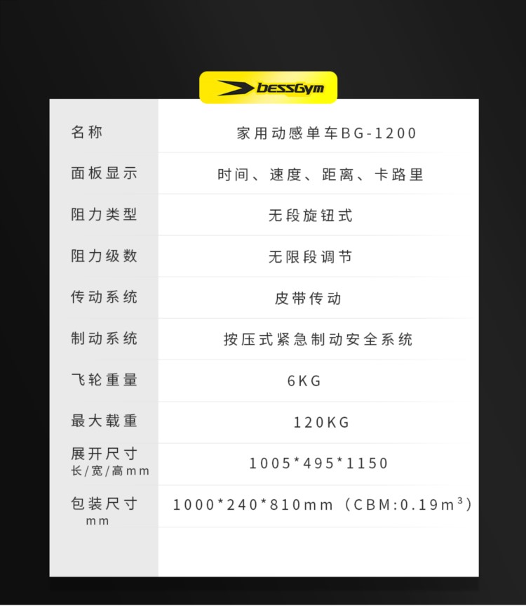 商品名称:【精选】必动(BESSGYM) BG-1200 家用动感单车 (单位:台) 红黑色