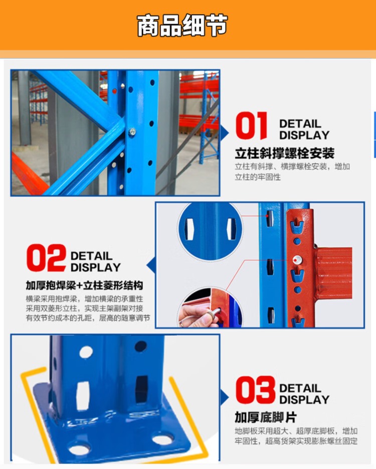 商品名称:【精选】澳美佳 1.5T二层重型货架主架 270*100*350cm (计价单位:组)