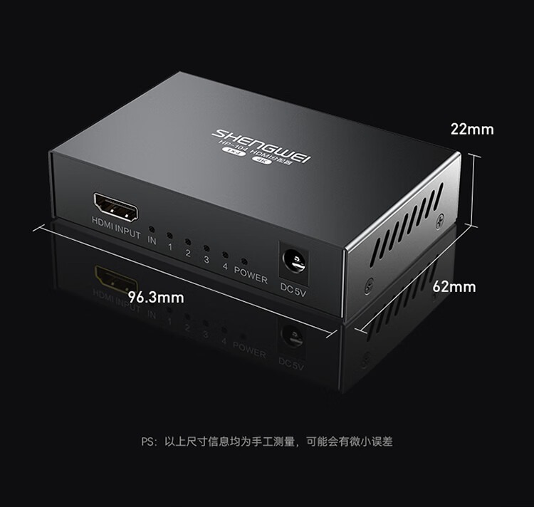 商品名称:【精选】胜为 HDMI 分配器一分四 一进四出分屏器 配3C电源适配器 笔记本电脑智能盒子连接电视投影仪显示器HP-104
