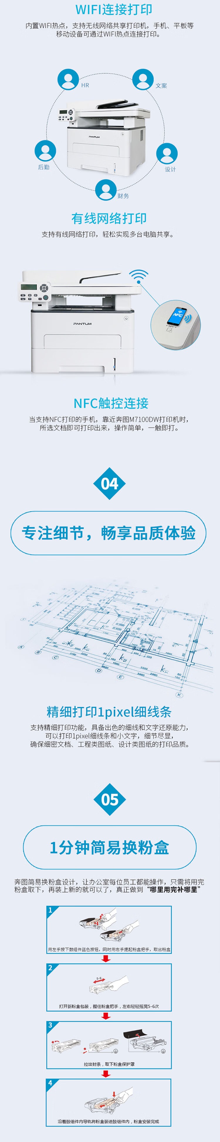 商品名称:【精选】奔图 M7100DW 多功能一体机 (计价单位:台) 黑白激光多功能一体机(打印 复印 扫描)