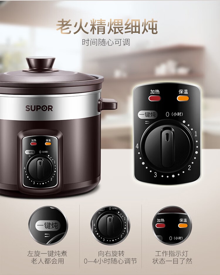 商品名称:【精选】苏泊尔 DG40YK6-30 土陶瓦罐汤系列电炖锅 4L (计价单位:台) 紫色