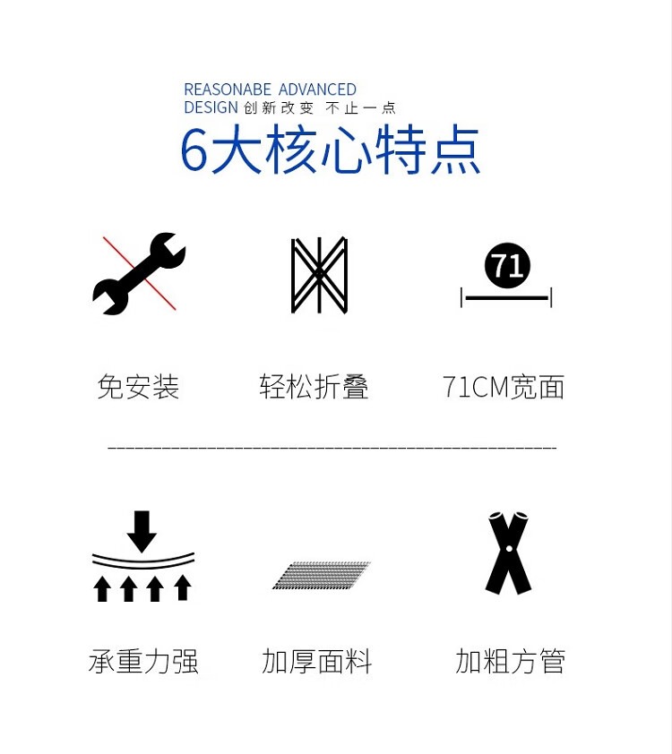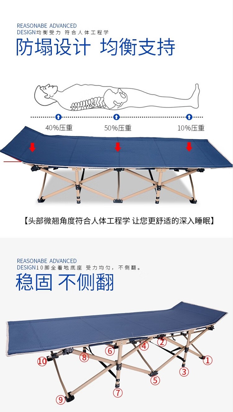 商品名称:【精选】三极户外 加厚方管免安装便携午睡床折叠床加鹿绒垫 TP1008 190*70*36cm (藏青)