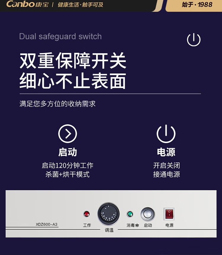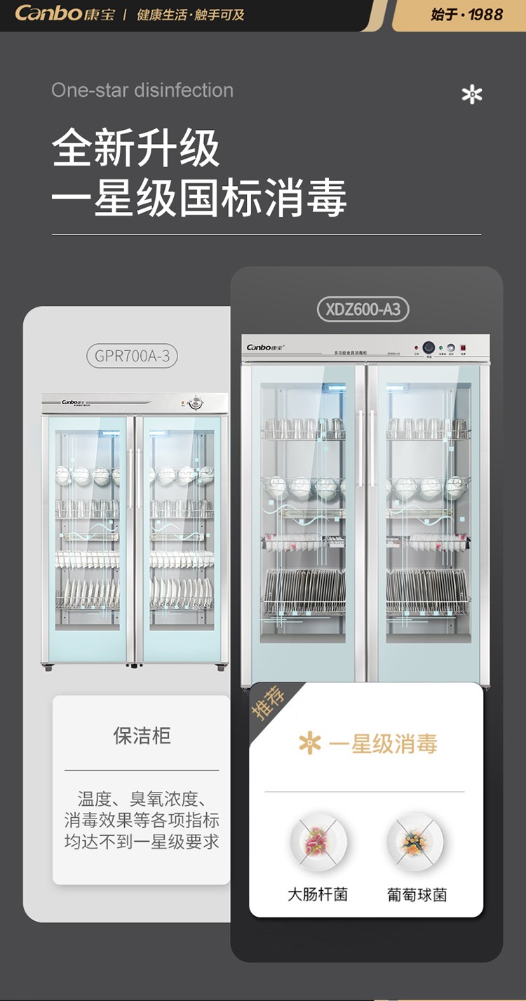 商品名称:【精选】康宝/Canbo 消毒柜 XDZ600-A3 立柜式 臭氧 紫外线消毒 600L 1615W 一星消毒