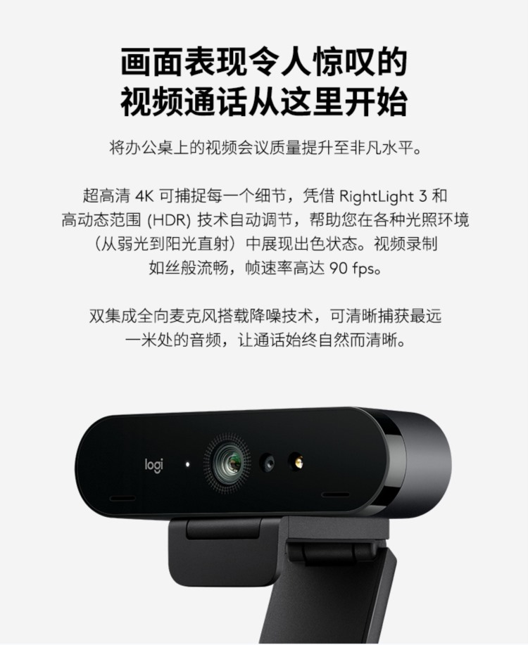 商品名称:【精选】罗技/LOGITECH 网络摄像头 C1000S 4K超清 黑色