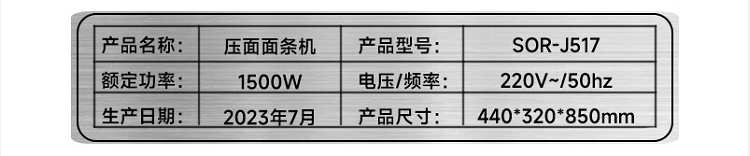 商品名称:【精选】松润SOR-J519 510*580*1130 70中速压面机银色(单位:台)