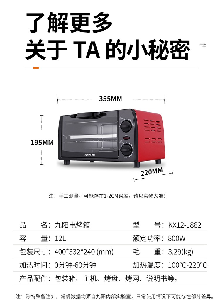 商品名称:【精选】九阳电烤箱KX12-J882(GBHX)