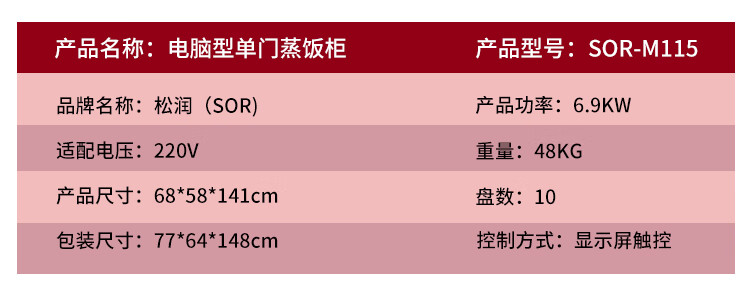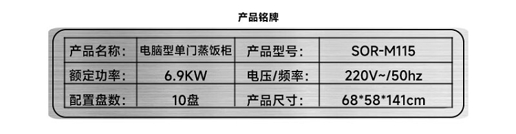 商品名称:【精选】松润SOR-M116 68*58*141 12盘单门蒸饭柜银色(单位:台)