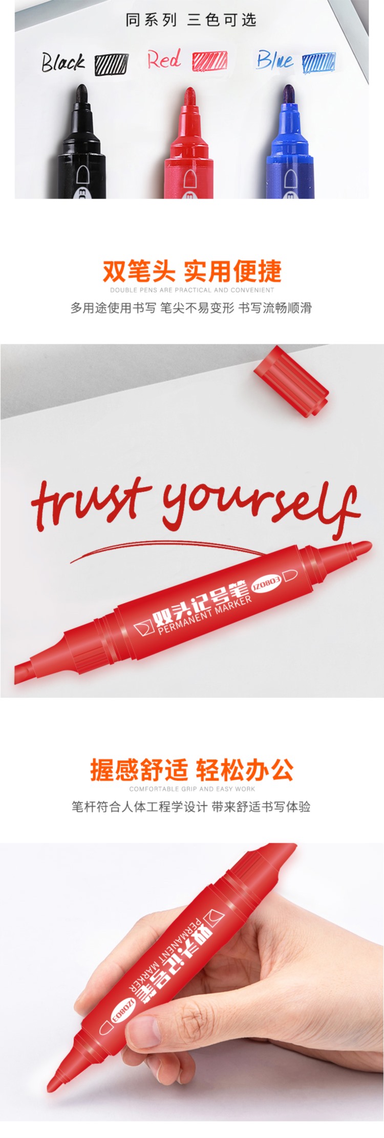 商品名称:【精选】及至 JZ0803- 2.0mm/6.0mm大号双头油性记号笔 10支/盒 (计价单位:盒) 红色
