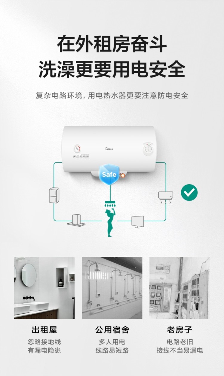 商品名称:【精选】美的 Midea 电热水器 F80-A20GA2(H) 80升 (一价全包)