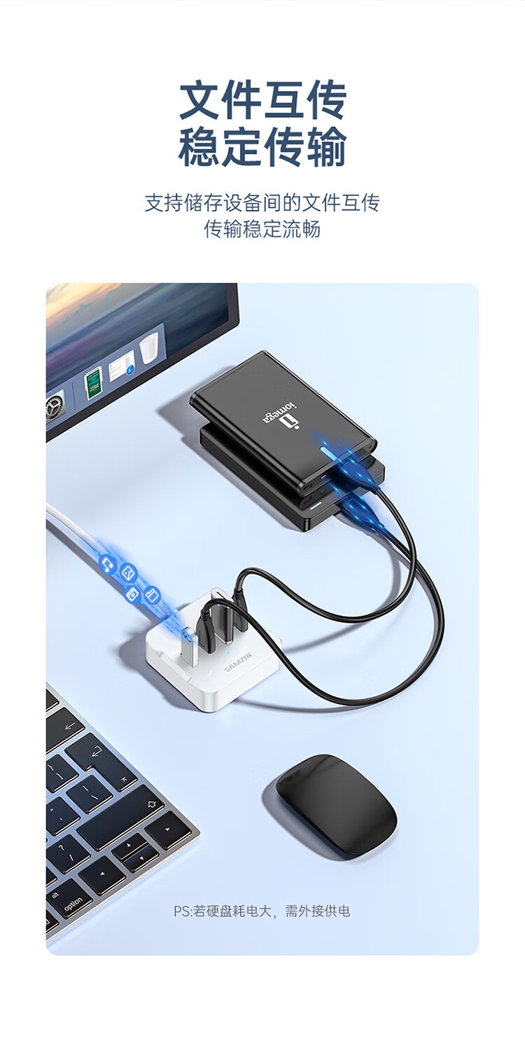 商品名称:【精选】山泽/SAMZHE USB分线器 3.0高速4口HUB扩展坞集线器 HUB03 笔记本电脑一拖四转换器延长线带电源接口0.5米 白色HUB03