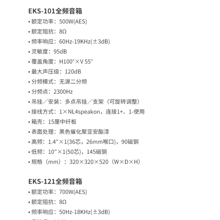商品名称:【精选】得胜/TAKSTAR EKS-101 专业全频音箱 10吋500W全频音箱音响系统(单位:对)