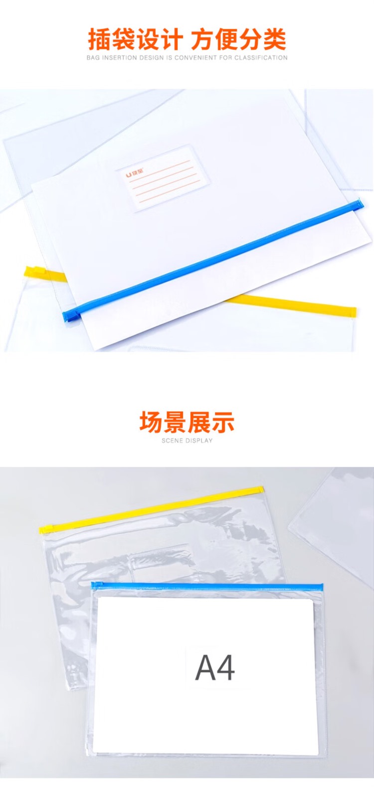 商品名称:【精选】及至 JZ5618 A4拉链袋 10个/包 (计价单位:包) 混色