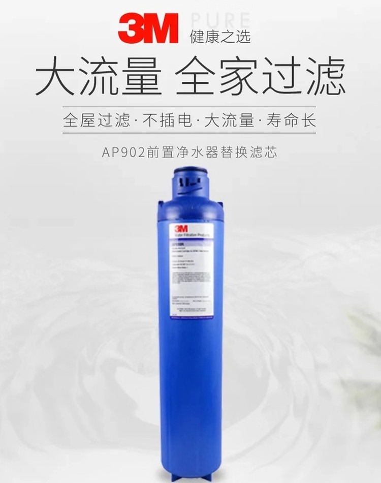 商品名称:【精选】3M 净水器 AP902 产品类型(净水器) 安装方式(厨下式) 净水流量(75.7L/Min) 额定功率(无需用电 ) 出水类型(全屋前置,不可直饮) (计量单位:台 ) 蓝色
