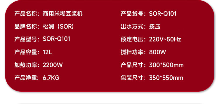 商品名称:【精选】松润SOR-Q104 380*1070 30L豆浆机银色(单位:台)