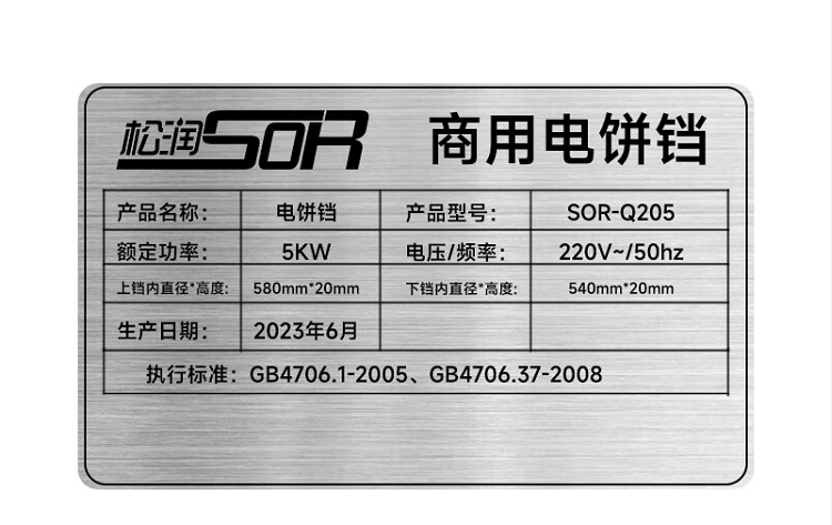 商品名称:【精选】松润 SOR-Q206 830*660*920 立式电饼铛银色(单位:台)