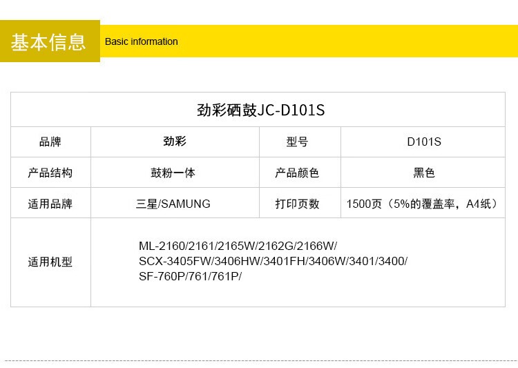 商品名称:【精选】劲彩(GBOSD) J-D101S硒鼓 适用三星打印机SCX3400 ML2160 2165 2162 2166 SF761 碳墨粉鼓 专业版